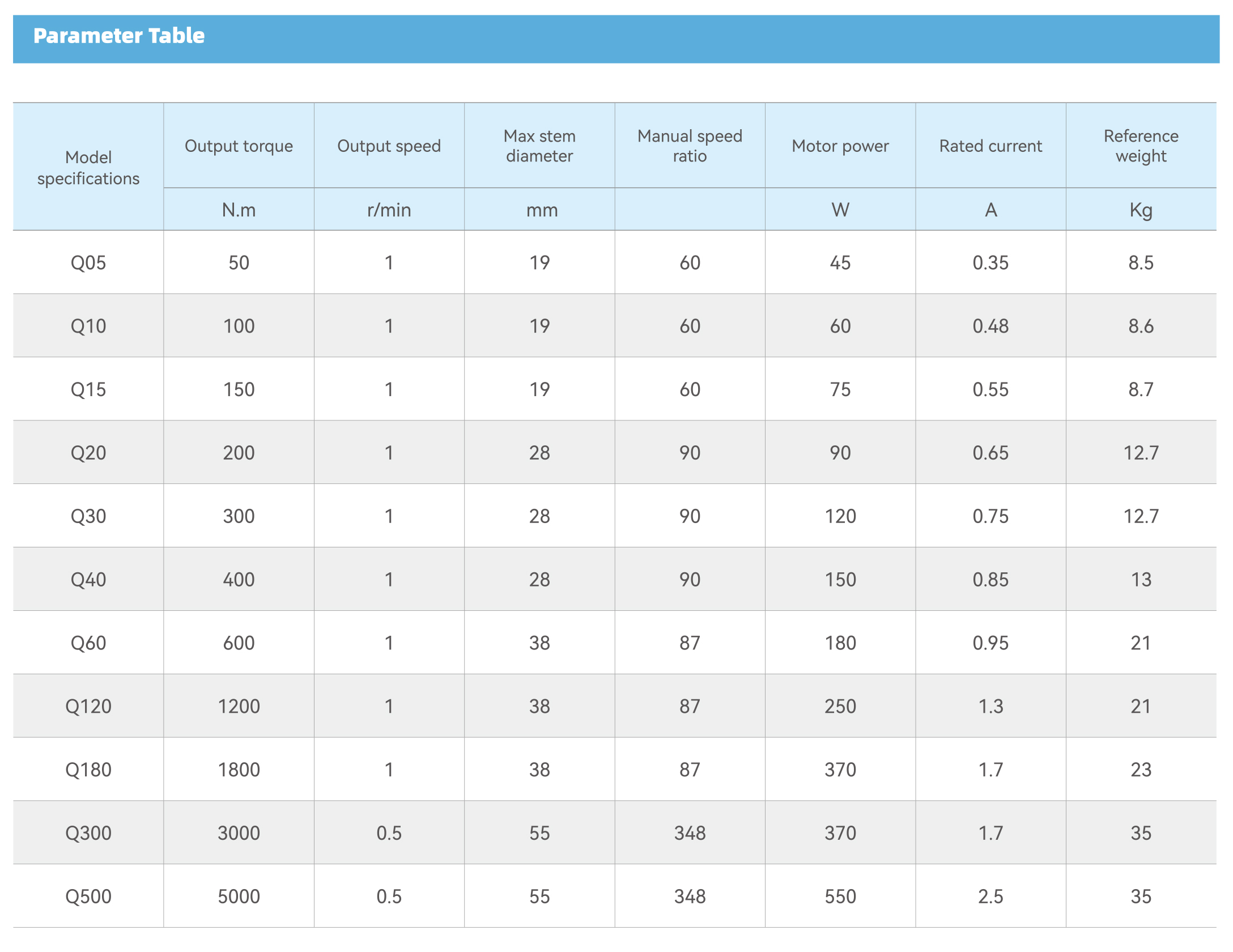 The Q series valve electric actuator is suitable for small and medium-sized butterfly valves, ball valves, and other similar equipment that can rotate 90°. As a stable and reliable angular actuator, it can be adapted to the needs of different control systems and working environments. The integrated design of the transmission mechanism enables the product to have a smaller volume and a simpler appearance. Safe and reliable manual design, fully automatic manual/electric switching without the need to switch handles. A good level of protection can meet the needs of various designs: explosion-proof type, integral switch type, and integral adjustment type.